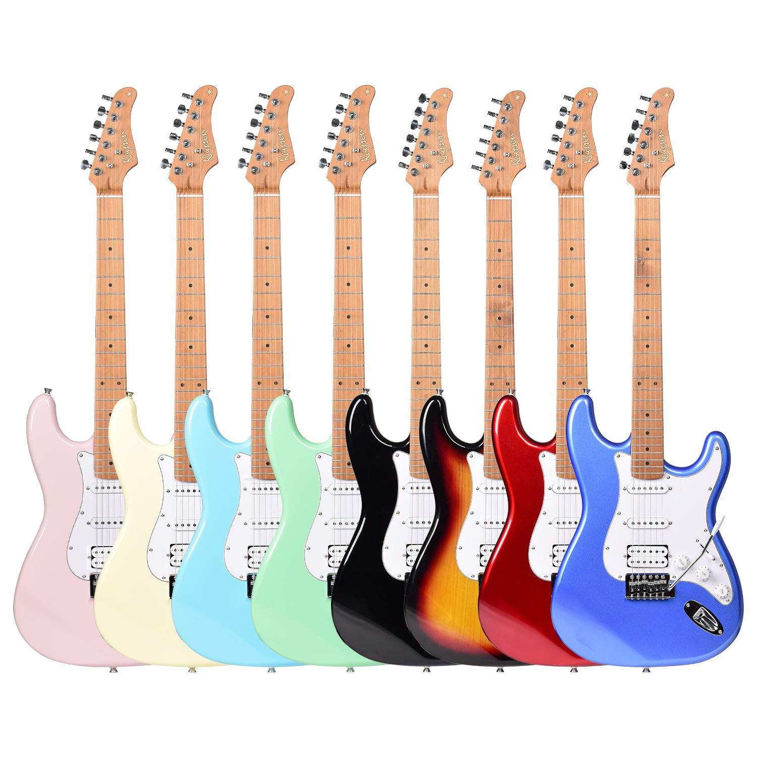 KST-210-H Kaysen electric guitar is best choice for beginner and also good to experience guitarists. The body is made of high density linden wood. The fingerboard and neck are made of carbonized roasted maple. With C-shape design of neck, it's easier to hold and keep when guitarist playing this model electric guitar. On the fingerboard, there are 22 stainless steel frets perfect for solo. And the pickup is S-S-H and with 5 ways switches, 1 volume and 1 tone. By adjusting the switch, the tone can be adjusted from crisp to thick. (SSH) The tone is relatively wide, suitable for blues, metal and other styles. The guitar looks good with high gloss finish. If you looking for SSS model ST electric guitar, model KST-210-S and K-EG1-M as well as K-EG1-R may suit your needs. We also can provide guitar amplifier, guitar picks, guitar strings, guitar cable, guitar bag to match 1 set. Beside electric guitar, bass guitar, acoustic guitar and classical guaitar are supllied too. Brand Kaysen…