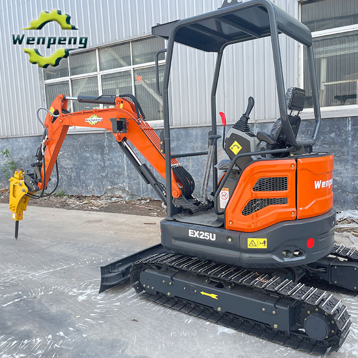 The EX25U 2.5ton mini crawler excavator with Yanmar engine (meets Euro 5 and EPA 4 emission standards) is an efficient, environmentally friendly and flexible small construction machinery. It is suitable for various narrow space working environments such as urban construction, landscaping, and farmland operations. Features 1. The 2.5ton mini crawler excavator is equipped with Yanmar engine that meets the Euro 5 and EPA 4 emission standards. It is green, environmentally friendly, powerful, and energy-saving. 2. The EX25U crawler mini excavator has a compact body and tailless design, which is suitable for operations in narrow spaces. 3. The 2.5ton mini crawler excavator can rotate 360° and the boom can swing 180° 5. Equipped with a fully enclosed cab, sound insulation and noise reduction, a wide field of vision, and standard air conditioning, which improves the operator's work comfort and safety. 6. The EX25U 2.5ton mini crawler excavator uses a durable crawler chassis with a retra…