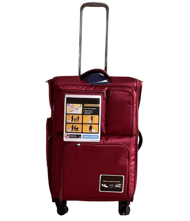 This universal wheel multi pocket fabric travel boarding bag is a travel solution that combines portability, multifunctional storage, and flexible mobility. It is made of high-quality wear-resistant fabric, equipped with 360 degree universal silent wheels and multiple functional pockets, designed specifically for short trips, business trips, and daily commuting, making it an ideal companion for your efficient travel.Core highlights and advantages of the productEfficient storage system: The bag is equipped with multiple functional pockets (including zipper pockets, mesh pockets, side pockets, etc.) to help you sort and store your luggage. Dry wet separation design (some models) separates toiletries from clothing, ensuring cleanliness and hygiene.Flexible mobility and multi-mode portability: Equipped with 360 degree universal silent wheels, the steering is flexible and smooth, and it can roll smoothly on various surfaces with minimal noise. Adjustable pull rod (some models) or reinforc…