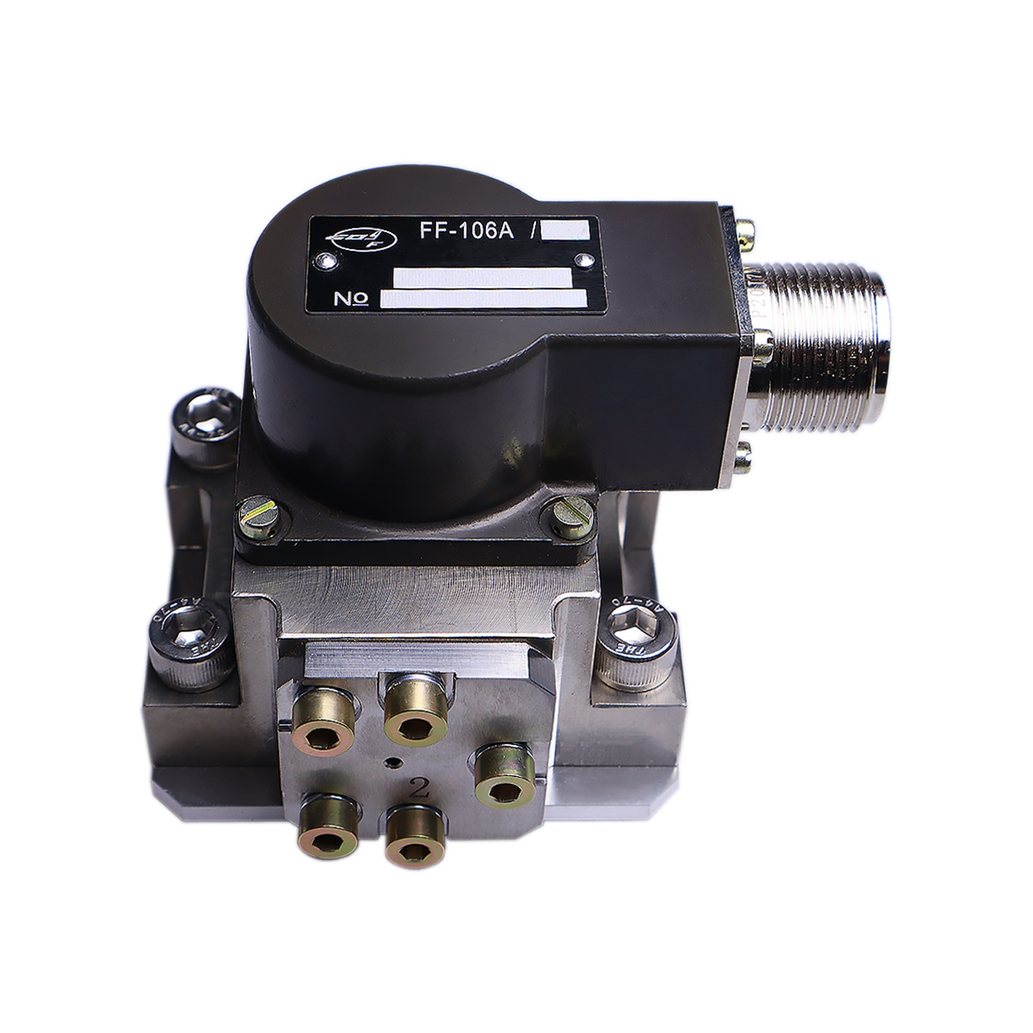 Product Description: The FF-106A series electro-hydraulic servo valve is a two-stage dual nozzle baffle flow servo valve with force feedback. Under a pressure difference of 21MPa, its flow range is 63L/min and 100L/min. This series of servo valves adopts a fully stainless steel shell, compact internal structure, high structural strength, and relatively small volume and weight. It has the advantages of fast dynamic response, good linearity, zero drift, stable working performance, high reliability, long service life, small internal leakage, and low power consumption. Product Features: ● High control accuracy, fast dynamic response, and easy operation ● All stainless steel shell, high structural strength ● Compact internal structure, small volume, and light weight ● Stable working performance, high reliability, and long service life ● Small internal leakage and low power consumption ● Low hysteresis loop, high resolution, high repeatability accuracy ● Good linearity, strong driving f…