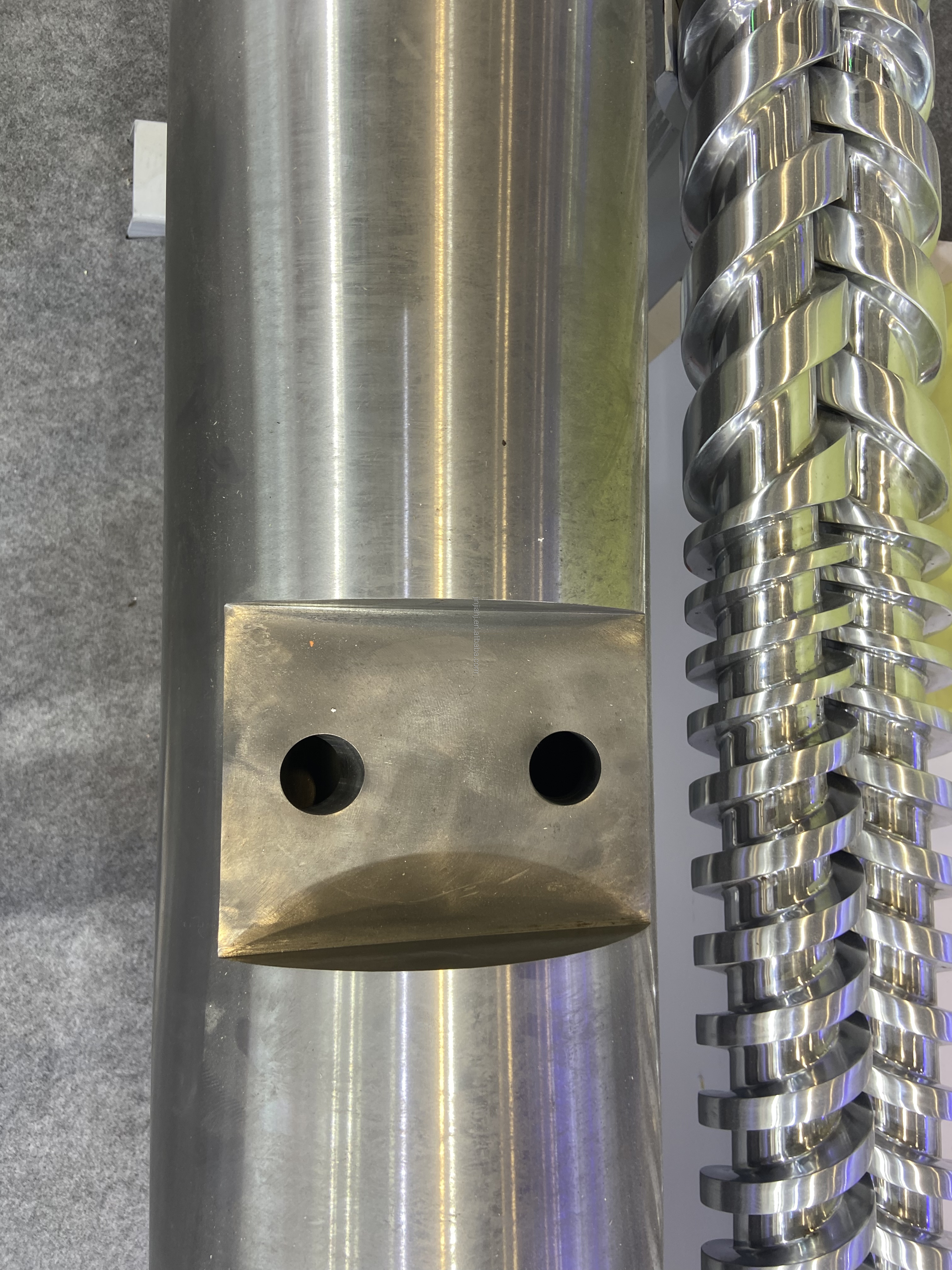 (d/D) Specification (mm) Length 挤出能力 (kg/h) Ability 螺杆转速 (rpm) Speed Φ35/Φ77 810 40-70 5-50 Φ45/Φ90 990 50-80 5-45 Φ50/Φ105 1070 100-150 4-45 Φ51/Φ105 1220 10-150 4-45 Φ55/Φ110 1200 120-180 4-40 Φ60/Φ125 1320 150-200 4-40 ... ... ... ... Φ110/Φ220 2950 700-800 6-35 Our company focuses on the production of ultra-high wear-resistant tungsten carbide alloy barrel screws, including Bimetallic barrel for injection moulding machine , Bimetallic screw for injection moulding machine,Bimetallic barrel for extrusion machine, Bimetallic screw and barrel for rubber machine,supercritical carbon dioxide foaming screw, Bimetallic twin barrel screw. We are willing to work together with general customers to create the most wear-resistant bimetallic barrel screw in China.