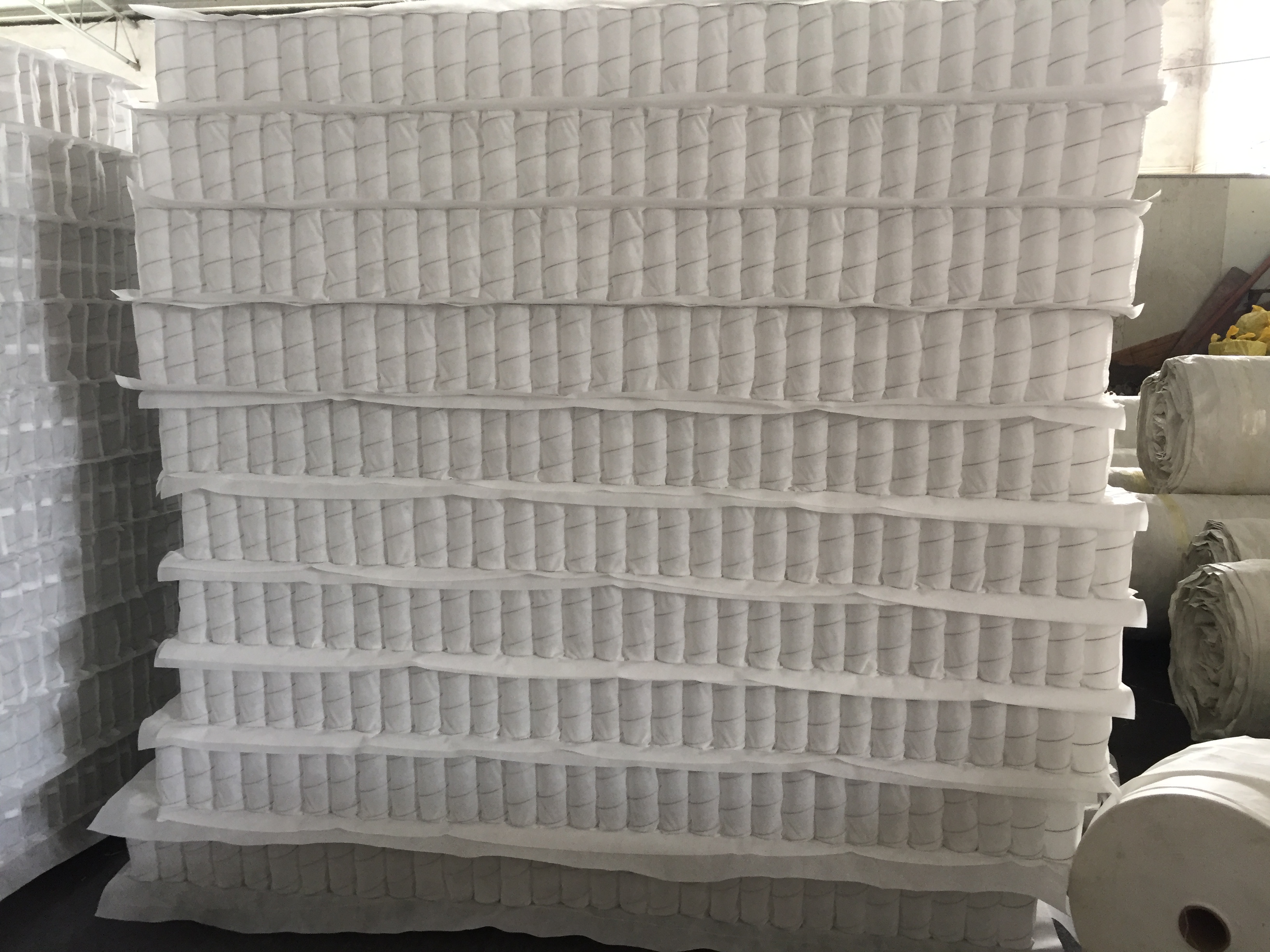 Product Description Product Name Mattress Pocket Spring Materials High Carbon Steel Wire & High Quality Non-Woven Fabric Wire Diameter 1.0-2.3 mm Coil Middle Diameter 6-7 cm Head Diameter 4-6.5 cm Coil Counts According to the demand of clients Middle Diameter 4.5-7.5 cm Turns 4-7 Turns Size Any size available Color White, Blue, other customized color Height 6.0-25 cm Zone 1/3/5/7/(Customized) Non-Woven Fabric 65-100g/m2 Packing Compressed Packing or Rolled Packing Why Choose Us Production Process Packing & Loading Packing and Loading in factorySupply Ability of our factory is 600000 Pieces per Month, welcome to contact us to offer best price for you!
