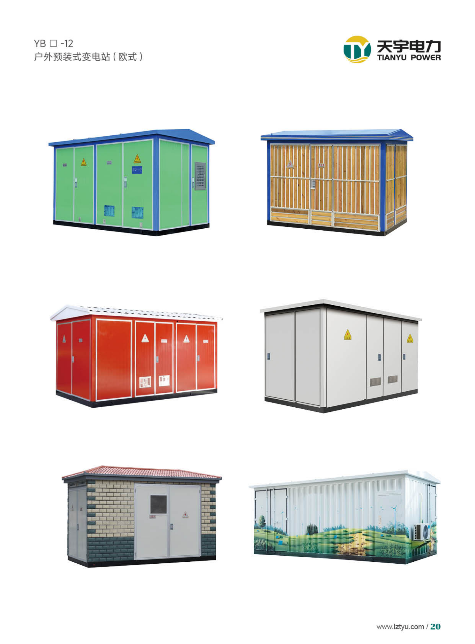 YB▢-12 series outdoor prefabricated substation (European style) is a high-voltage switchgear distribution transformer and low-voltage distribution equipment The device is a factory prefabricated indoor and outdoor compact power distribution equipment arranged according to a certain wiring scheme, which organically combines functions such as high voltage power receiving, transformer, and low voltage distribution, and is installed in a moisture-proof, rust proof, dust-proof, rodent proof, fire-proof, anti-theft, spacer, fully enclosed, movable steel structure or non-metal box. It operates in a fully enclosed and electromechanical integrated manner; Widely used in urban power grid renovation, residential communities, high-rise buildings, industrial and mining areas, hotels, shopping malls, airports, railways, oil fields Indoor and outdoor places such as docks, highways, and temporary electrical facilities.