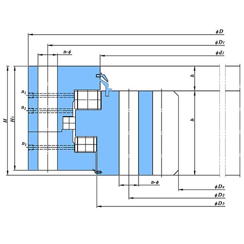 The three-row cylindrical roller slew bearing with toothed inner ring is the core supporting component in the field of heavy-duty machinery. It consists of an inner ring with an inner ring gear, an outer ring and three rows of independent cylindrical rollers. It integrates super load-bearing and direct power transmission functions. It has a compact structure and is adaptable to complex working conditions. Its core advantages are reflected in two points: First, three rows of rollers are divided into load-bearing units. Two rows of axial rollers are dedicated to bear bidirectional axial loads, and one row of radial rollers bear radial loads. The line contact design evenly distributes the load, and can effectively withstand huge axial force, radial force and tilt. The overturning moment and load-bearing capacity are much better than those of single-row or double-row structures; secondly, the inner ring gear transmission**, the precision ring gear processed in the inner ring can directly m…