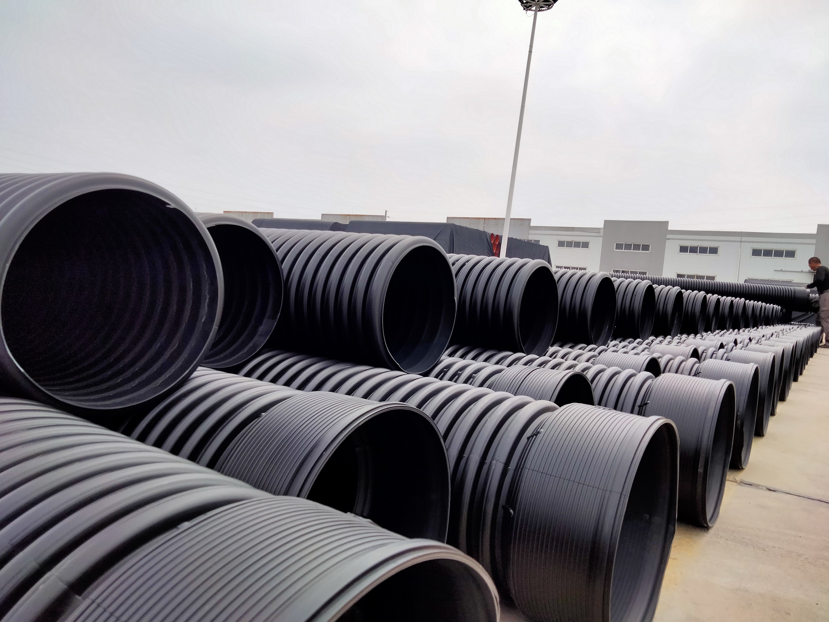 HDPE Pipes for Drainage and Sewerage PE double-wall corrugated pipe is a new type of lightweight pipe made of polyethylene as raw material, which is processed by extrusion and special molding technology. Our company’s main products are PE Pipe for Water Supply,HDPE Sewage Pipe,UPVC Water Supply Pipes,UPVC chemical pipe,UPVC electrical pipes,UPVC drainage pipes,PVC-Uh Drainage Pressure Pipes,PVC-UH drainage pipes,Floor heating pipe,PE-RTⅡ pipe,PPR Water Pipe,Plastic fitting . Inner DiameterDN/ID Length(m) Ring Stiffness Ring Stiffness 200 6M SN4 4KN/㎡ SN8 8KN/㎡ 300 6M SN4 4KN/㎡ SN8 8KN/㎡ 400 6M SN4 4KN/㎡ SN8 8KN/㎡ 500 6M SN4 4KN/㎡ SN8 8KN/㎡ 600 6M SN4 4KN/㎡ SN8 8KN/㎡ 800 6M SN4 4KN/㎡ SN8 8KN/㎡ Black PE Double Wall Corrugated Pipe Applications: 1.Sewer and drainage 2.Frontage drains for terrace and other residential units in housing schemes. 3.Perimeter drains for commercial, industrial units and individual factories. 4.As collector drains…