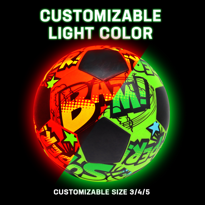 This is a luminous football with full text printing. The text on the surface of the ball is printed in high definition, and the whole football is full of personality and visual impact. This football not only has a unique appearance, but the rubber outer skin increases the wear resistance and waterproofness of the football, and it can be easily handled on grass, sand or indoor venues. [Personalized Design] The surface of the football is covered with high-definition printed patterns, which are rich and colorful, suitable for display and use. If you have customized needs, our design team can also help you complete the personalized design [High Durability] The rubber outer skin is more wear-resistant, prolongs the service life of the football, and is suitable for high-frequency training or competition. For more than 40 years, JYMINGDE has been developing and producing basketball,soccer ball,volleyball and other balls, and we are still leading the way in terms of performance, flexibility an…
