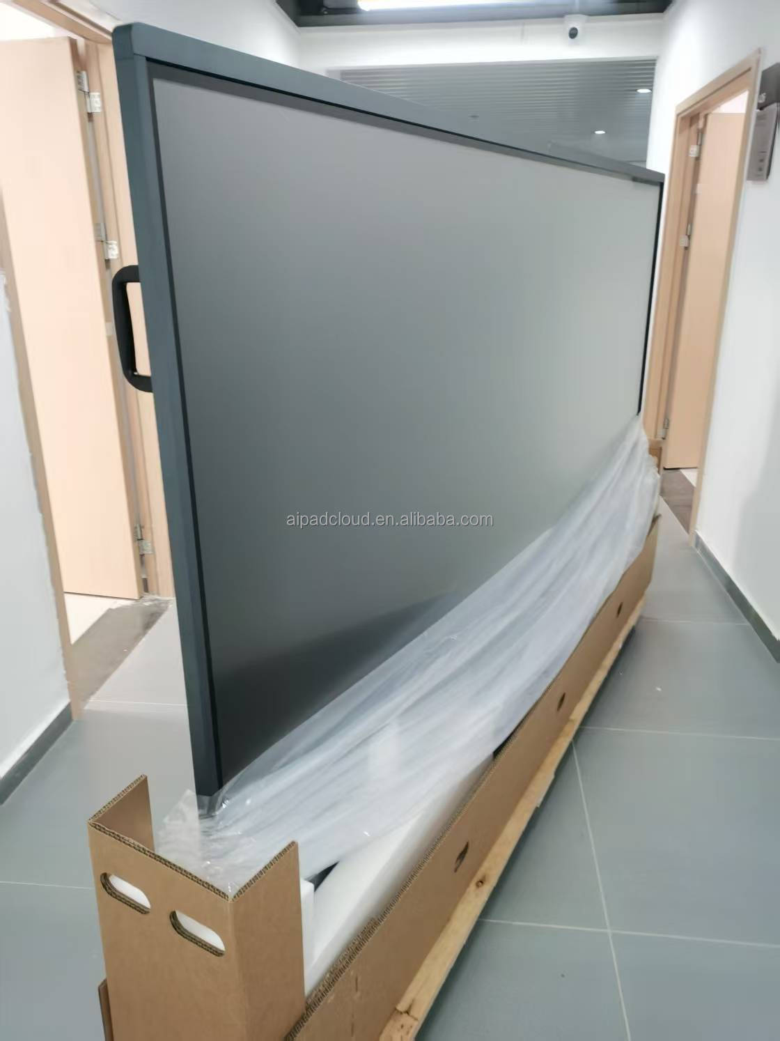 This is our 115-inch all-in-one giant screen for office meetings.Giant! That’s the first exclamation you’ll make when seeing this product—because we are China’s first factory to independently design and manufacture 115-inch products. With its optimized structure and superior quality, we have become a pioneering benchmark for 115-inch solutions in the industry.Boasting the most comprehensive functions, it delivers an unparalleled experience whether for large-scale corporate meetings or home theater movie playback. Equipped with a full-featured OPS computer, its dual-system capability stands out remarkably. Thanks to its built-in mobile stand, even the bulky unit can be flexibly placed anywhere. Quality Assurance Crafted with a full-metal body paired with high-transparency, thickened explosion-proof tempered glass, this bulky unit maximizes its inherent safety. You can move it with complete confidence, free from worries about minor operational errors resulting in financial losses. Thi…
