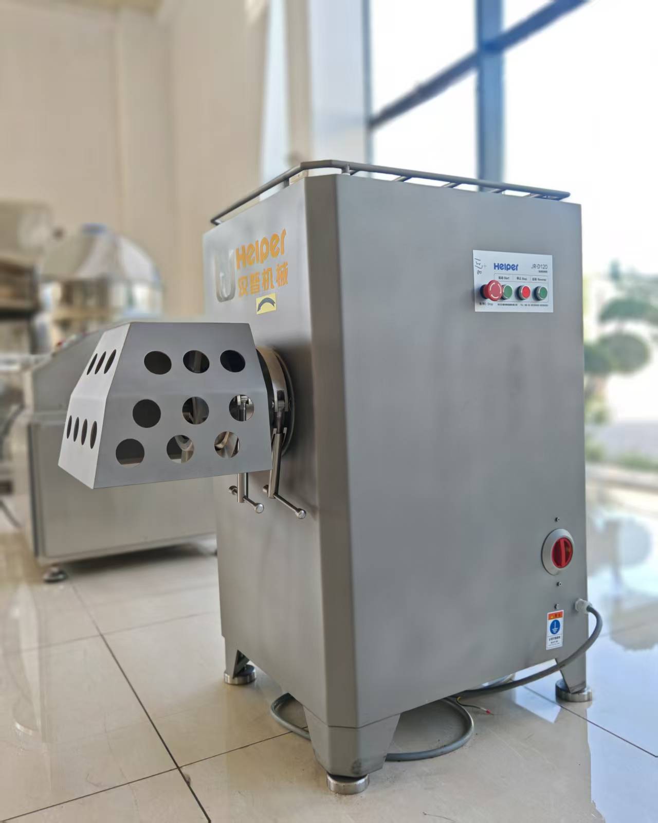 Industrial Frozen Meat Grinder Industrial Frozen Meat Grinder is indispensable equipment for meat processing. It directly grinds the frozen(-12°C) meat block to diced meat without damaging the muscle fiber tissues. The temperature of the meat does not raise much, which is good for keeping the product fresh, also makes well preparation for mixing and kneading.The meat doesn't need to be unfreezed, which reduces the damage and the loss of nutrient contents and fresh flavor. Features and Advantages of Factory Meat Grinder --- High capacity(at least 1000kg per hour) with neat structure. --- Whole body stainless steel. --- The worm is made from precision stainless steel casting. --- Safety monitoring switch once open the cover. --- Wide range of application: frozen and fresh meat, deepfreezed oil, gingeli, peanut grinding Key Parameters of Factory Meat Grinder Model Productivity(T/h) Power(kw) Power supply(v;Hz) Rotation speed of the worm weight(kg) JR-D1…