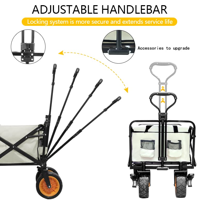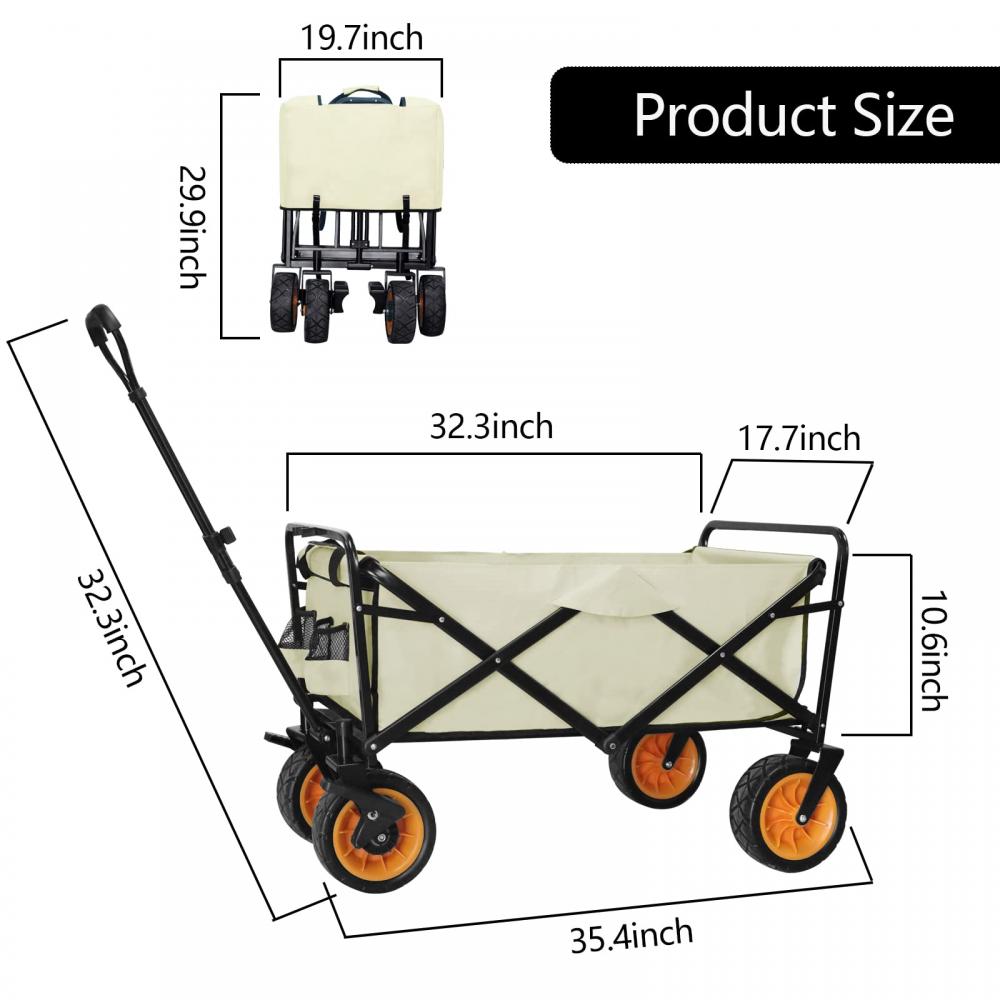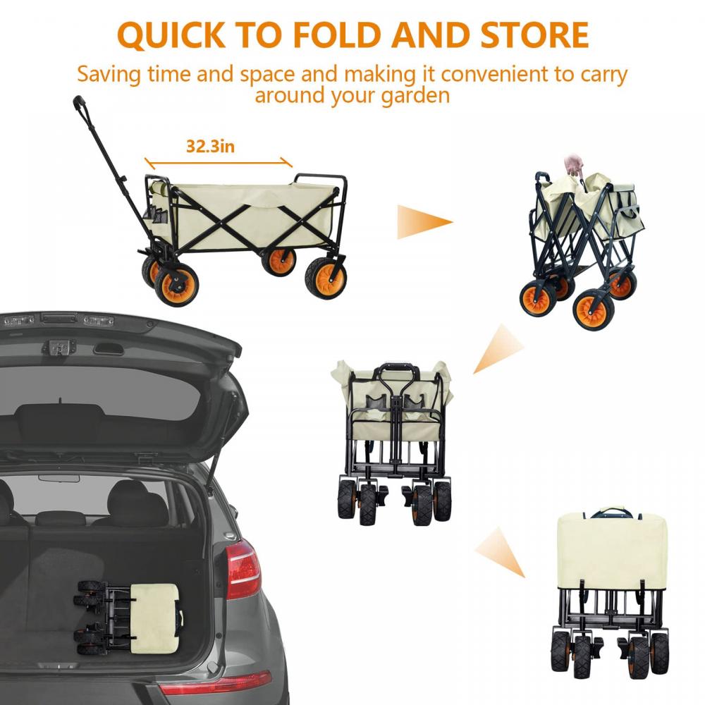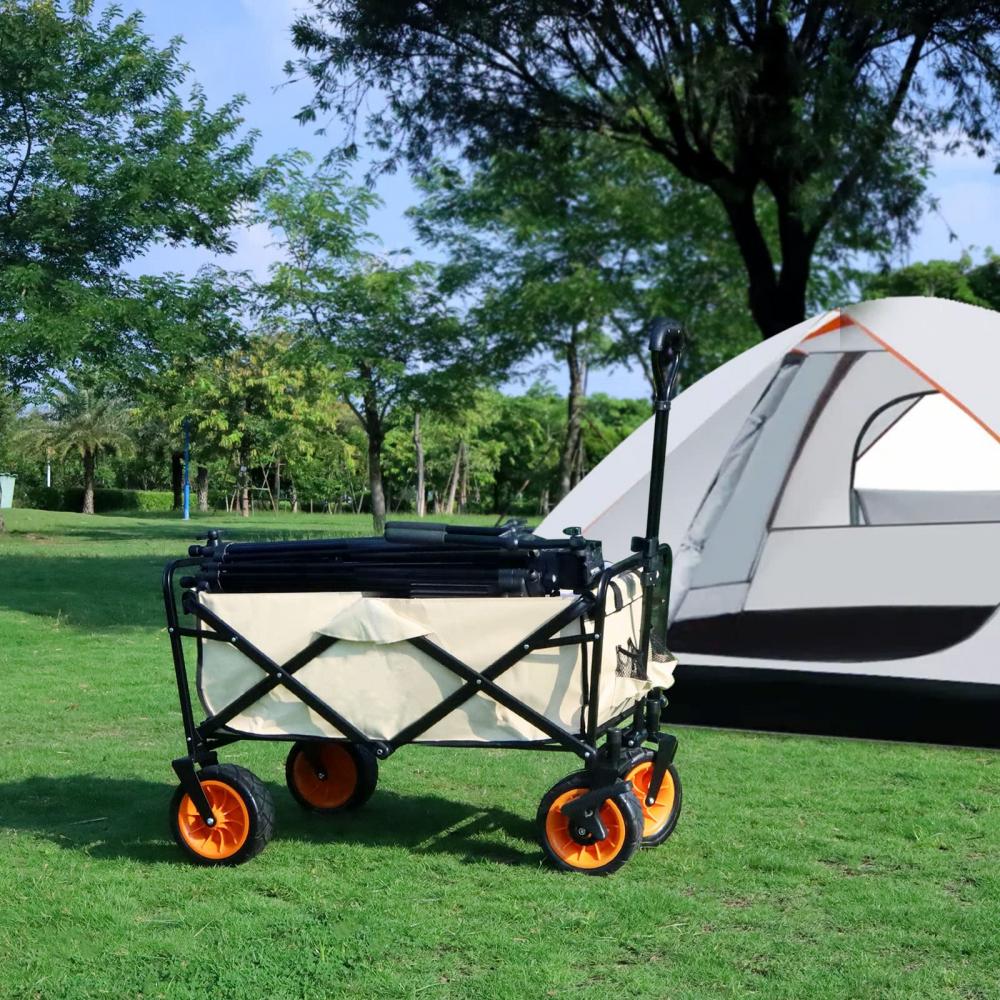 Outerlead Portable Utility Collapsible Wagon All Terrain Wheels This collapsible utility wagon is a must-have in your daily life. Haul everything you need for sporting, camping vacations, and backyard work with a folding wagon. The sturdy steel frame is collapsible and folds up for easy storage. Its extendable handle and heavy-duty wheels make it easy to carry flowers, tents, groceries, and other items from your car to the garden, campsite, and store. The folding wagon also included 2 mesh pockets on the outside, so you can keep your water bottle, snacks, and other items within easy reach as you move. We also provide other camping products, like picnic mat waterproof, sleeping bags for adults, portable charcoal barbeque grill, and so on.